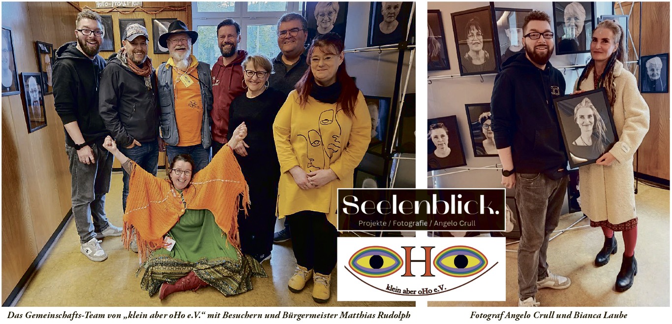 Das Fotoprojekt Fürstenwalder Seelen-Gesichter ist eine gemeinsame Idee von Angelo und klein aber oHo e.V. im Rahmen der Seelengesundheit, welches auf dem Ursprungsprojekt Seelenblick von Angelo basiert, bei dem es um Menschengeschichten und Schicksale geht, die fotografisch festgehalten in die Transformation gebracht werden dürfen. Es ist Hilfe zur Selbsthilfe, ein Nach-Außen-Treten in den öffentlichen Raum und soll Mut machen, sich so zu zeigen, wie man ist. Es geht nicht „nur“ um ein Bild, ein „schönes“ Foto, sondern vielmehr um den Menschen dahinter, es geht um Gefühle und Emotionen, ob Trauer, ob Freude, ob Nachdenklichkeit, alles darf sein – allein das Leuchten der Augen als Ausdruck des Selbst zählt. Jeder Mensch ist ein Unikat, jeder Mensch ist gleich viel wert. Lassen auch Sie sich berühren und inspirieren. Entdecken Sie all die Facetten, all die Farben der Menschen hinter dem Schwarz-Weiß. Die Fotoausstellung kann jeweils am Dienstag von 14-15:30 Uhr, Donnerstag von 15-17 Uhr und nach Absprache besucht werden.