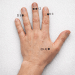 • Handmassage und Akupressur: Die Handkante der einen in die andere Hand legen. Mit dem Daumen die zum Mittelfinger ausgerichtete Ringfingerkante mehrfach vom Grundgelenk zur Fingerspitze hin kräftig ausstreichen. Das stärkt das Lungen-Qi. Die schmerzhaften Handpunkte A28 (macht die Nase frei), F4 (abschwellend), D3 (Wirkung siehe Dickdarm 4) können mit einer leeren Kugelschreibermine mit leichtem Druck gegen den Uhrzeigersinn 36-mal kreisend behandelt werden.