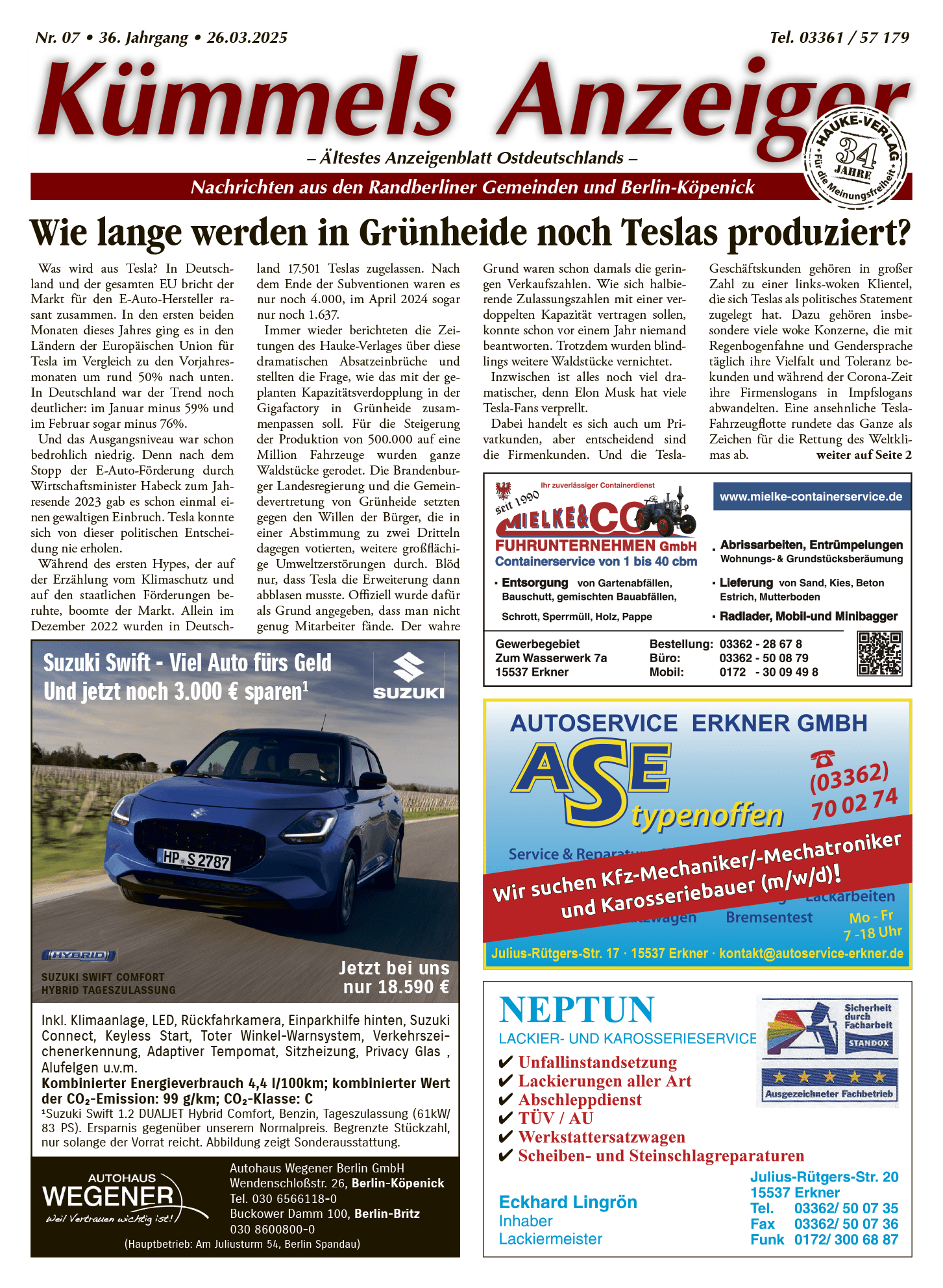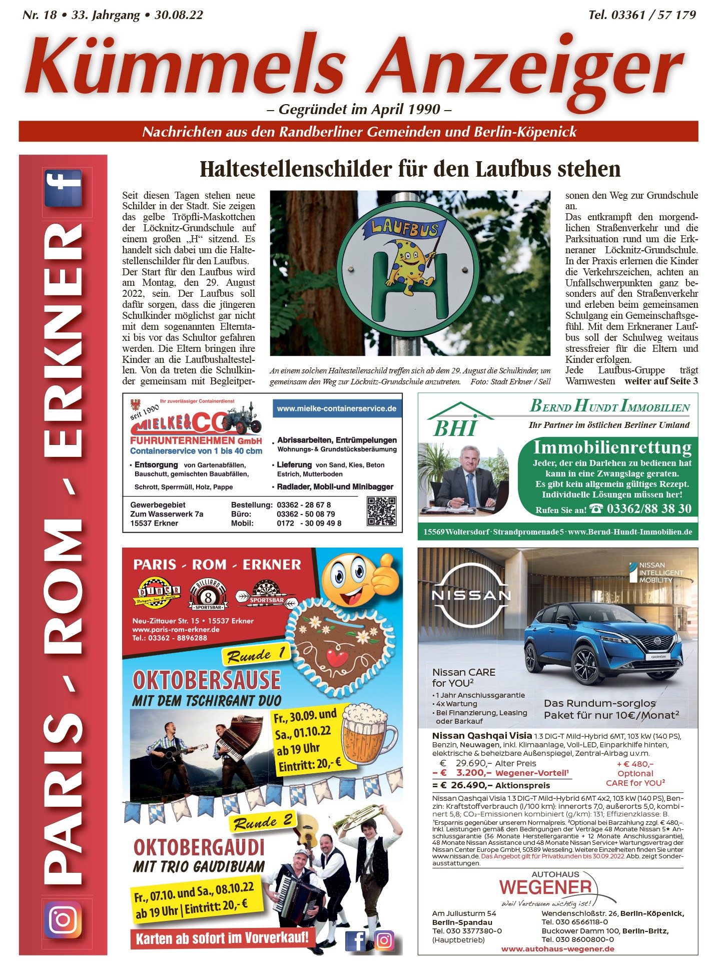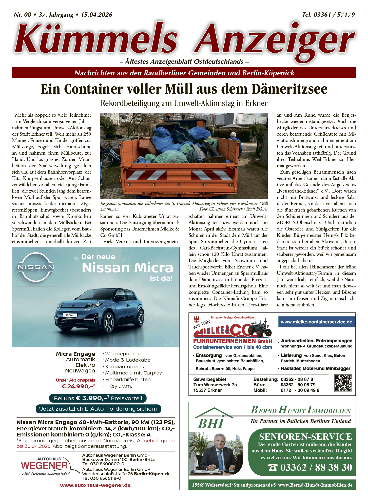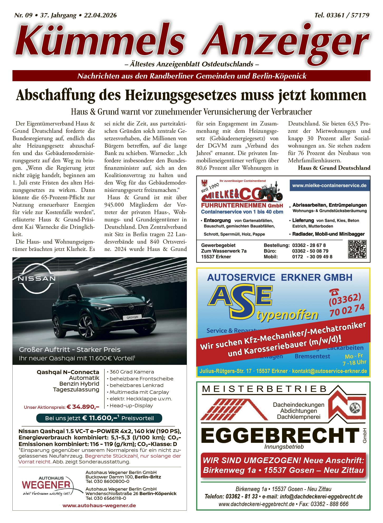 Verbreitungsgebiet: Amt Grünheide, Erkner, Gosen, Neu Zittau, Schöneiche, Woltersdorf