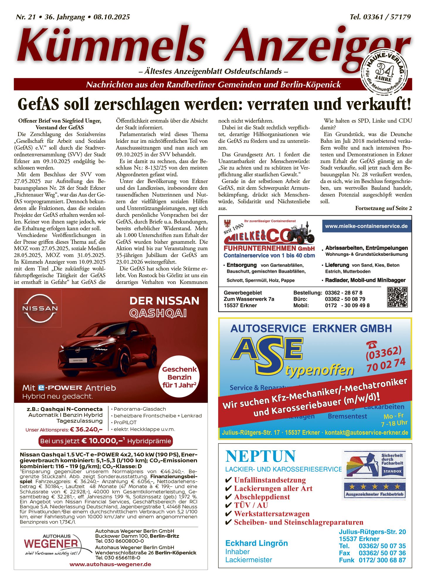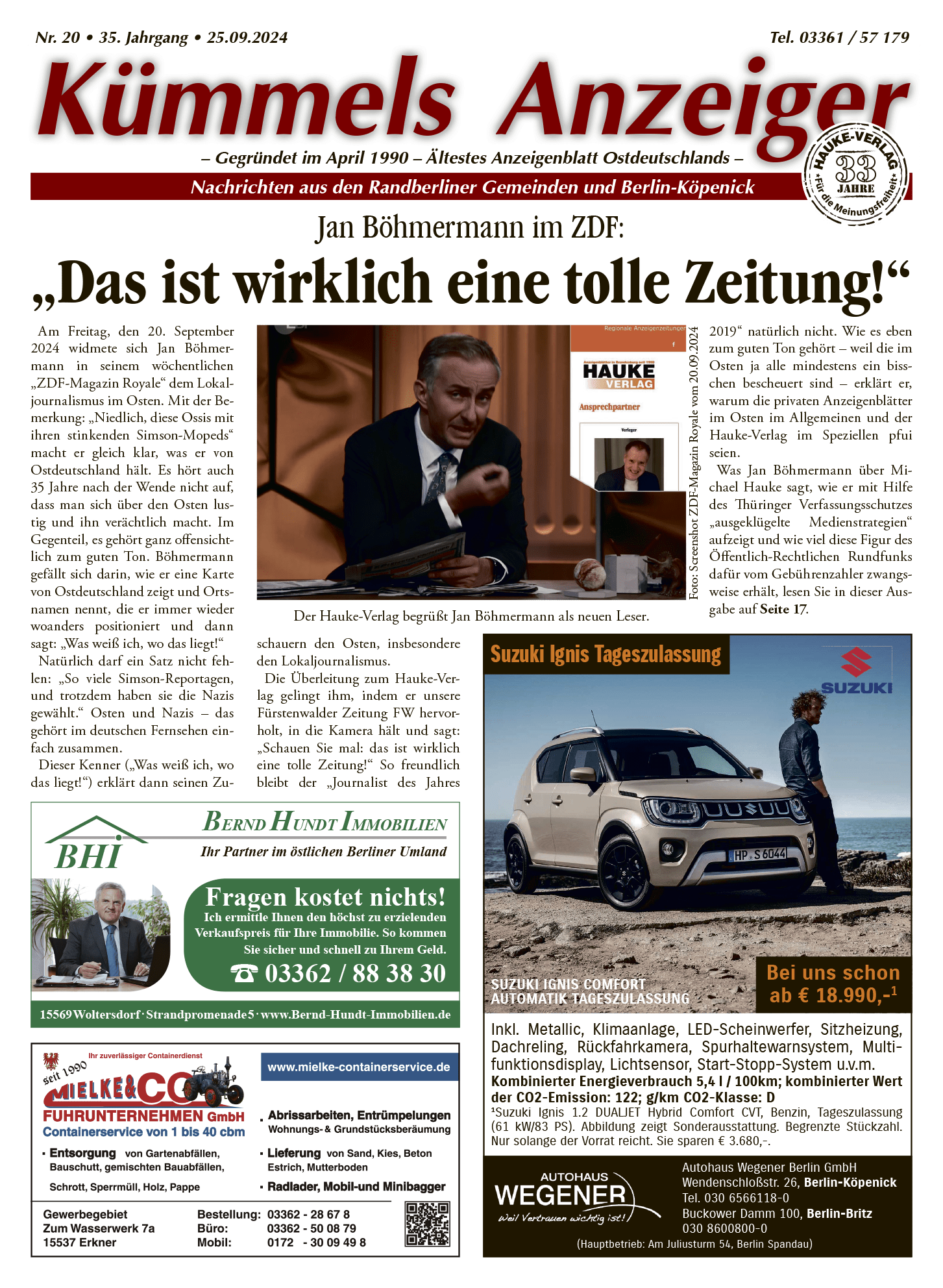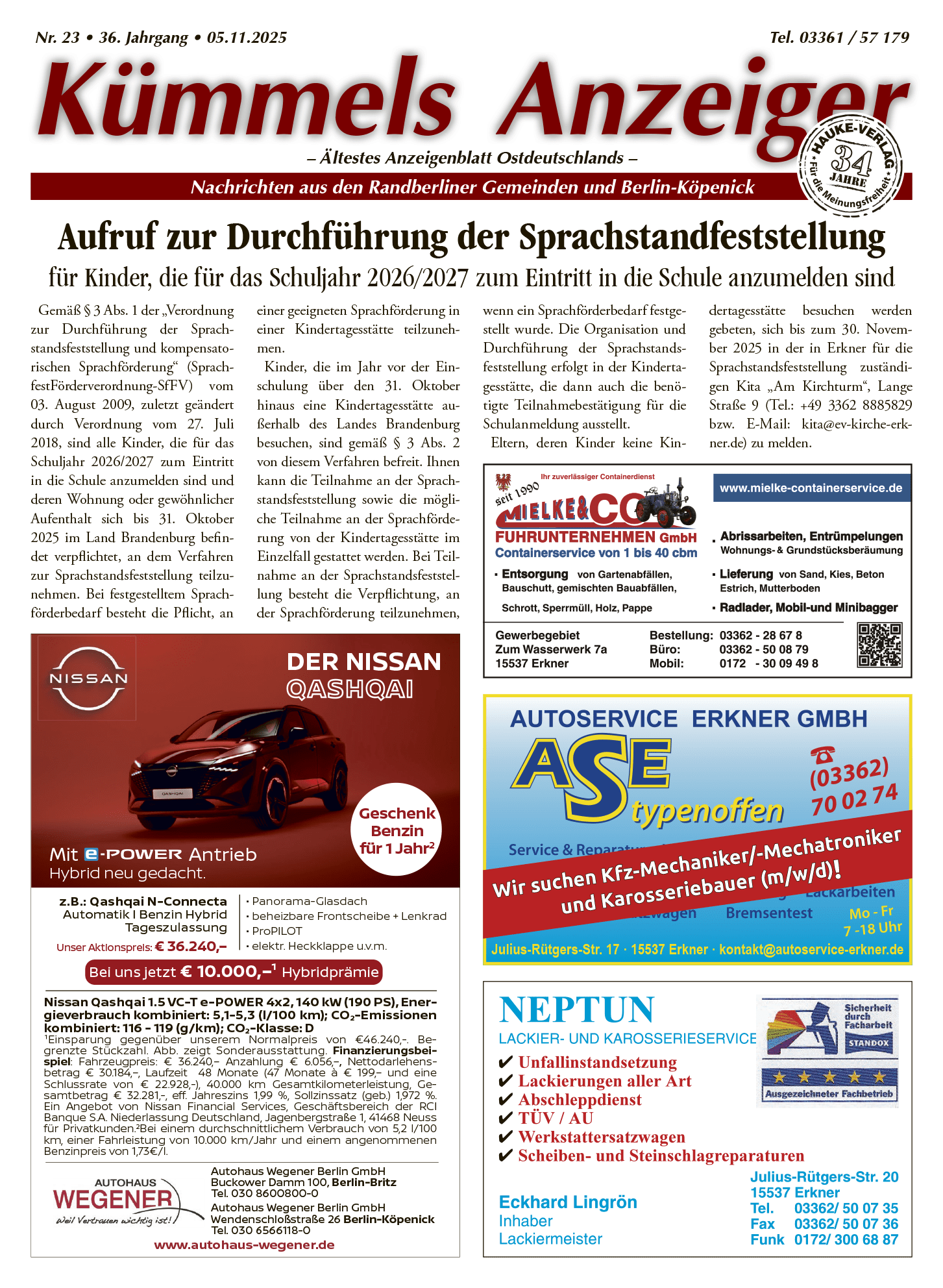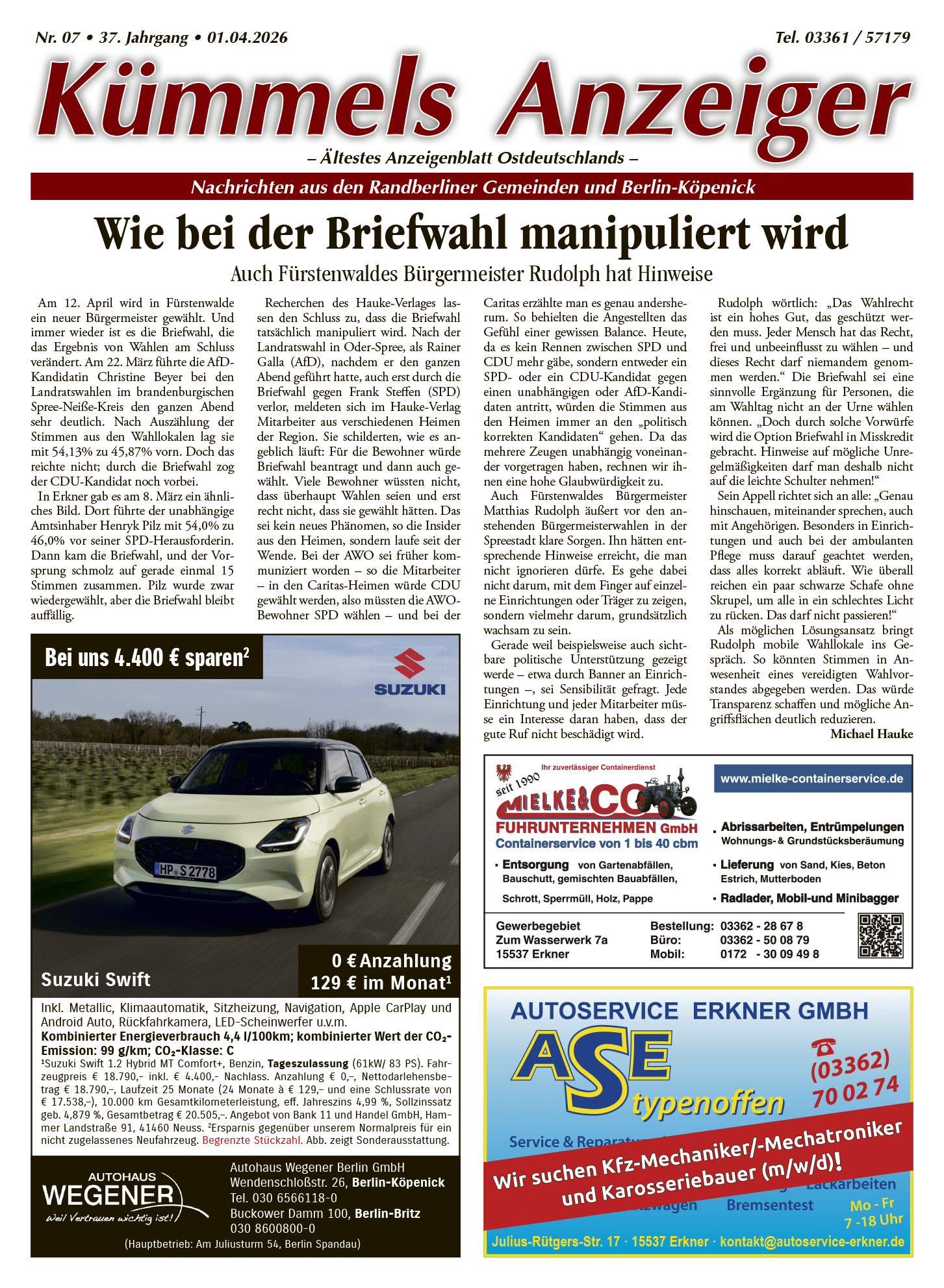 Büro: Alte Langewahler Chaussee 44, 15517 Fürstenwalde, Telefon 03361 57179